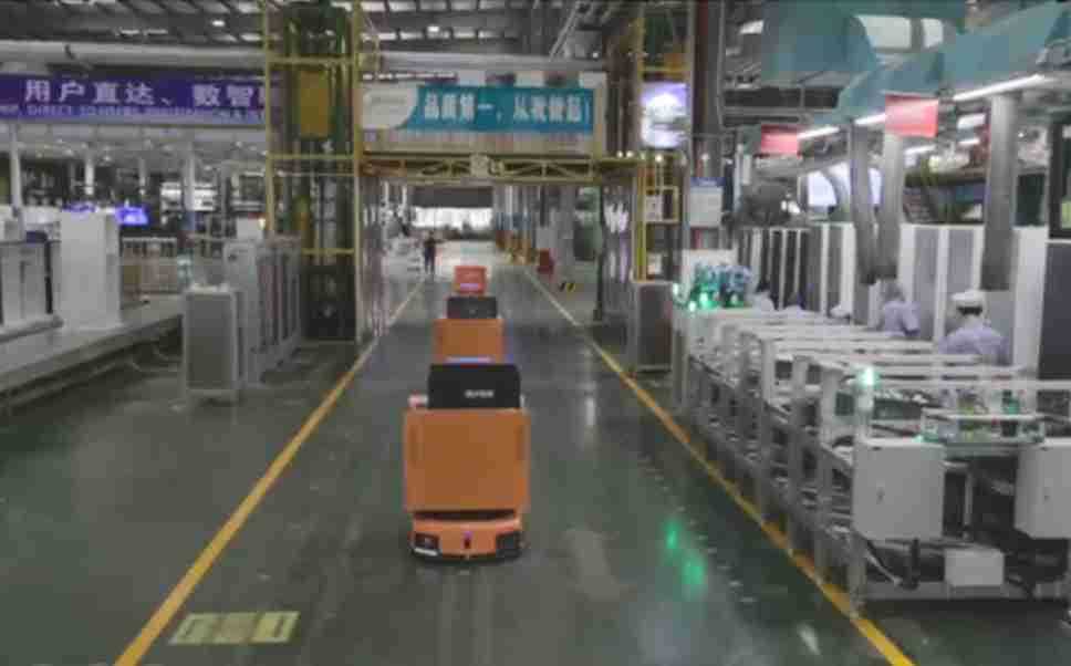 为车载冰箱物流配送打造的智能解决方案,,包含产中物流通过潜伏举升AMR搬运至线边,,,,产后成品物流智能仓储,,,流程包含产中物流智能齐套入库,,线边安灯叫料AMR智能配送至线边,,,,成品入库、、、、出库,,,通过无人堆高车机器人,,智能仓储管理替代人工作业管理,,,实现更高存储、、、、更高效率、、、、更具柔性化的解决方案。。。